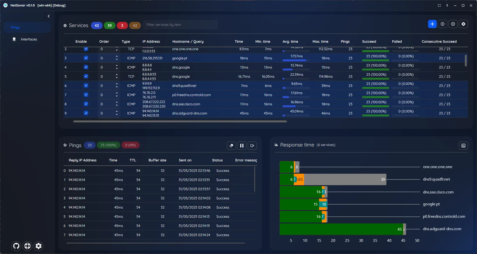NetSonar 基于 C# dotnet 构建,支持 Windows、macOS 和 Linux 系统,具有良好的跨平台兼容性。其核心功能包括: