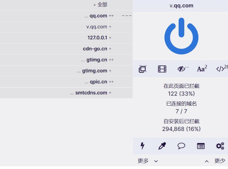 uBlock Origin 是一款高效的网络请求过滤工具:占用极低的内存和 CPU,与其它常见的过滤器相比,它能够更快加载并执行上千条过滤规则;uBlock Origin 使用 GPLv3 公共许可协议开源,自由并且免费。